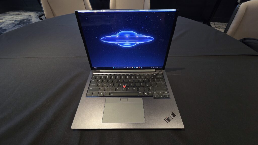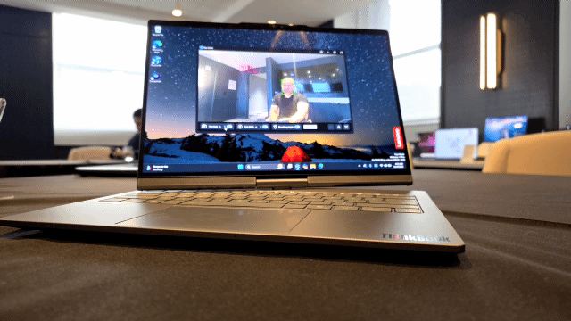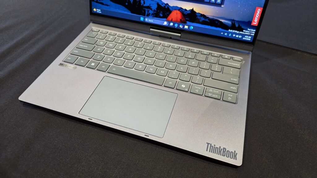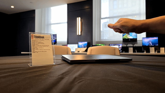Further enhancing the Lenovo ThinkBook Plus Gen 7 Auto Twist will be the new SMB Vertical AI Solution, a suite of AI-enabled applications. These features include productivity tools such as content creation enhancement, meeting transcriptions, and multilingual captioning. During our demo of the Lenovo ThinkBook Plus Gen 7 Auto Twist, we got the chance to experience the beta of an AI assistant buddy. The laptop sat between the presenter and me, acting as a translator between Chinese and English. The screen automatically turned to each of us, telling each of us what the other person said, both verbally and with captions. It was a nice little touch to just one of the many functions that this ThinkBook looks to bring to the table.
