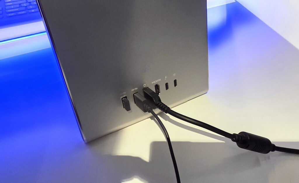 | PORTS | Rear: 1x TBT4 (40Gb) , 1x USB-C 3.2 Full Function Type-C in, 2x USB-A 3.2 (10Gb), HDMI-out (2.1/ TMDS), Power DC in, 1x USB-A 2.0 (hidden for KB/M) (system box side) Side: 1x USB-C 3.2 (10Gb), Headphone & Mic combo port, Power button, Camera E-shutter |