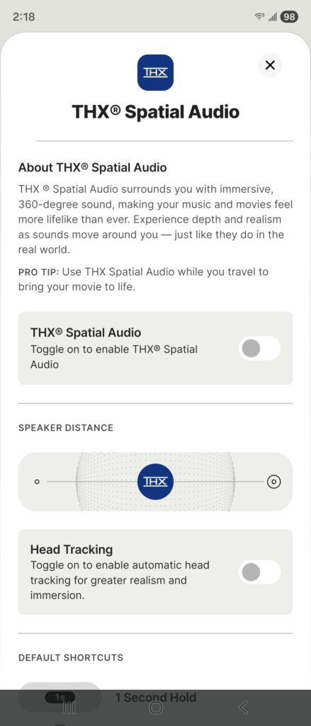 Being able to adjust the speaker distance using the app is a nice touch with a feature like this. It was quite noticeable that the farther the speaker was set, the more accurate the head tracking feature felt. That makes sense since turning your head when standing directly next to a live band would not feel as different as it would if you were doing the same from a considerable distance. So, in that regard, the Head Tracking feature was quite effective. However, having sound feel louder in one ear rather than the other because I turned my head did not really enhance the listening experience for me here.